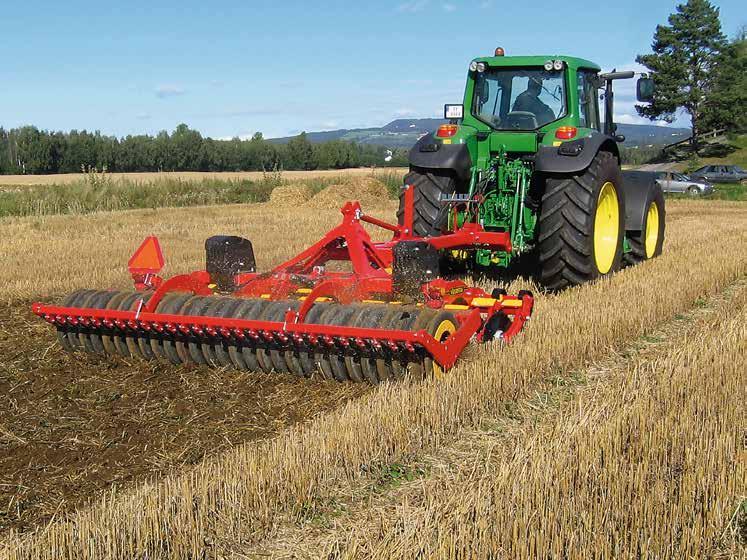 Effektiv 3-punkt- eller slepemontert skålharv for grunnbearbeiding av pløgsle, rett i stubb eller på Glyfosatsprøyta eng. Solid konstruksjon med lang levetid.