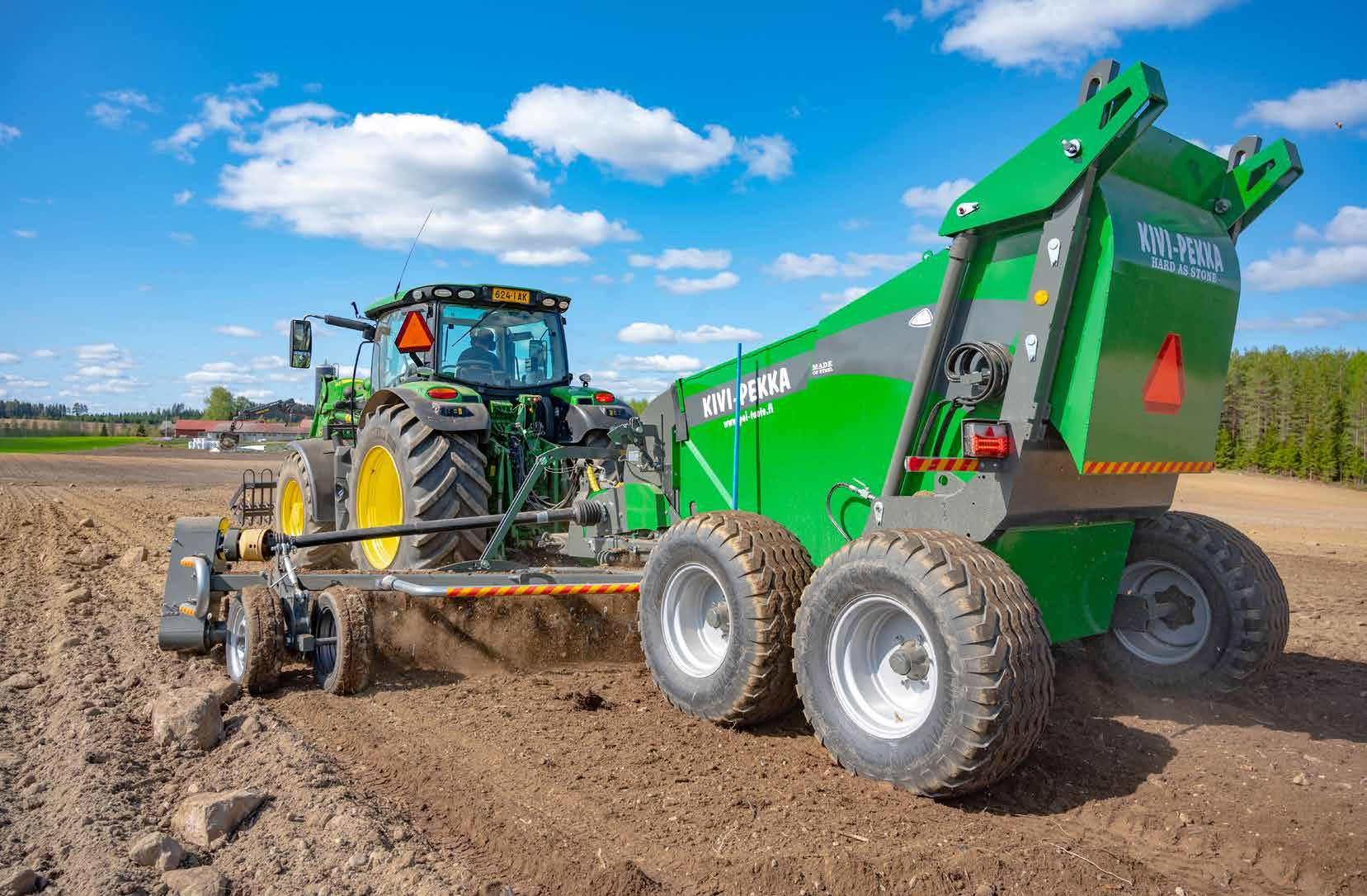 Ein enklare modell med arbeidsbreidde på 3,3 meter. Den 2 meter breie oppsamlar-rotoren plukker opp til 35 cm store steinar.