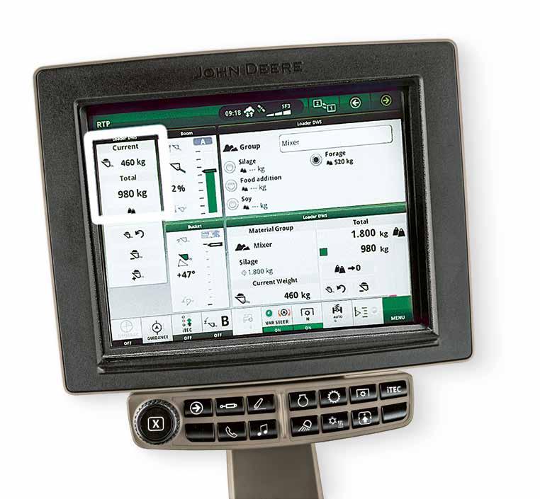 “Frontlastaren kan vege både når den står i ro eller køyrer. John Deere har den mest praktiske vegefunksjonen - den er rask og kan brukast i alle lasterposisjonar.”