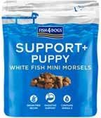 Godbiter laget av fisk tilsatt prebiotika for valpens fordøyelse. 970130PMM304