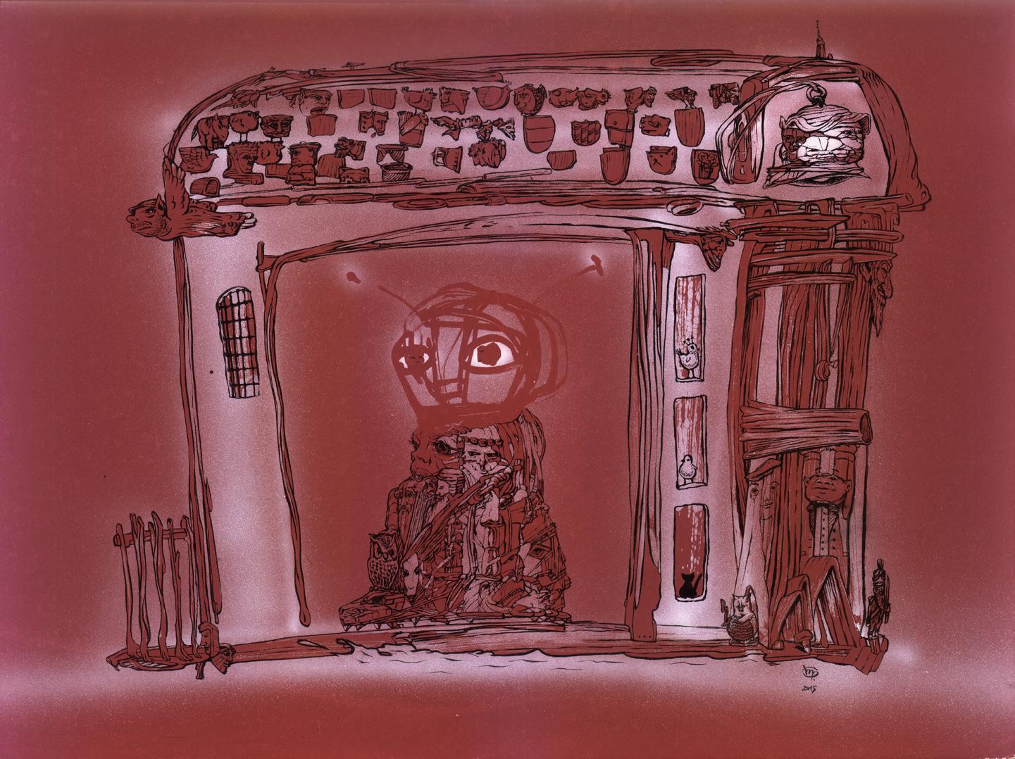 Tele van a padlás, 30 x 40 cm, tus-airbrush, 2015.