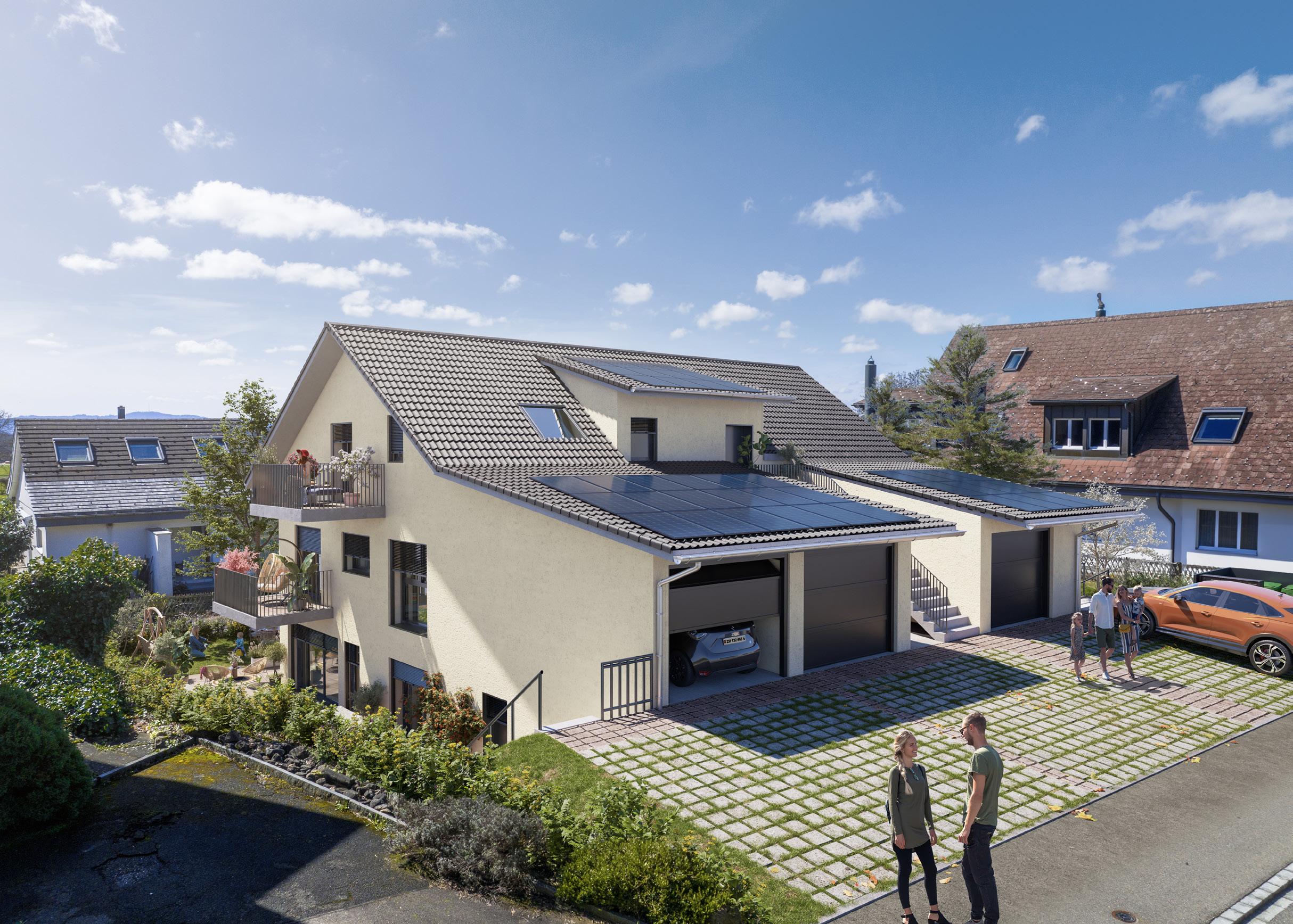 Die Wohnungen werden über eine eigene Wärmepumpe mit Erdsonde beheizt und alle beheizten Räume sind mit Bodenheizung ausgestattet. Ebenfalls sind auf den Dächern eine Photovoltaikanlage geplant, welche zur umweltschonenden Stromversorgung beiträgt.