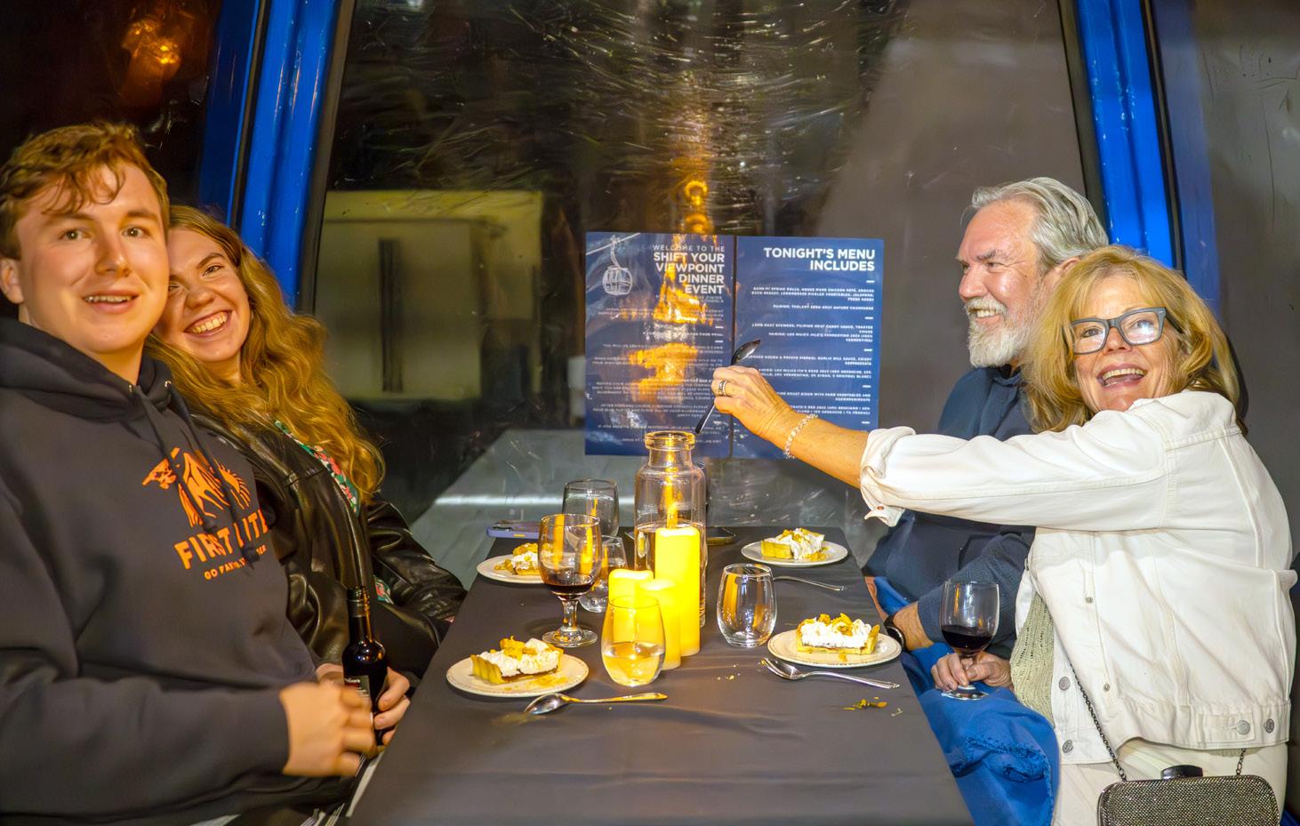 Arizona Snowbowl unveiled a one-of-akind dining experience Sunday, Aug. 24, with the Shift Your Viewpoint Dinner. The event was the first time Snowbowl has offered dinner service aboard the Arizona Gondola. Cabins were fitted with specially designed tables, transforming each car into an alpine restaurant in the sky.