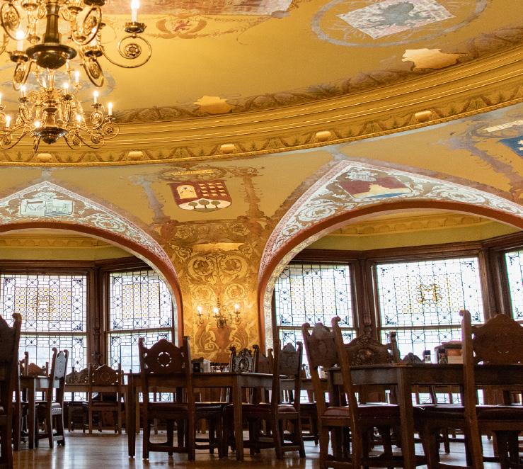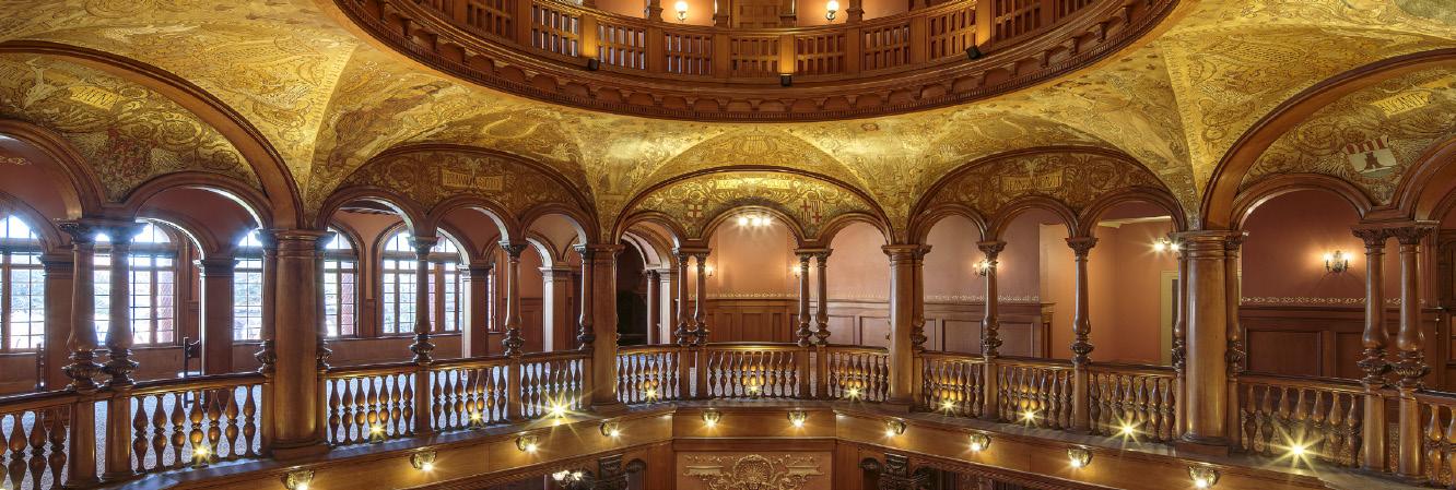 George Maynard painted the gilded dome of the Rotunda and murals in the Dining Hall.