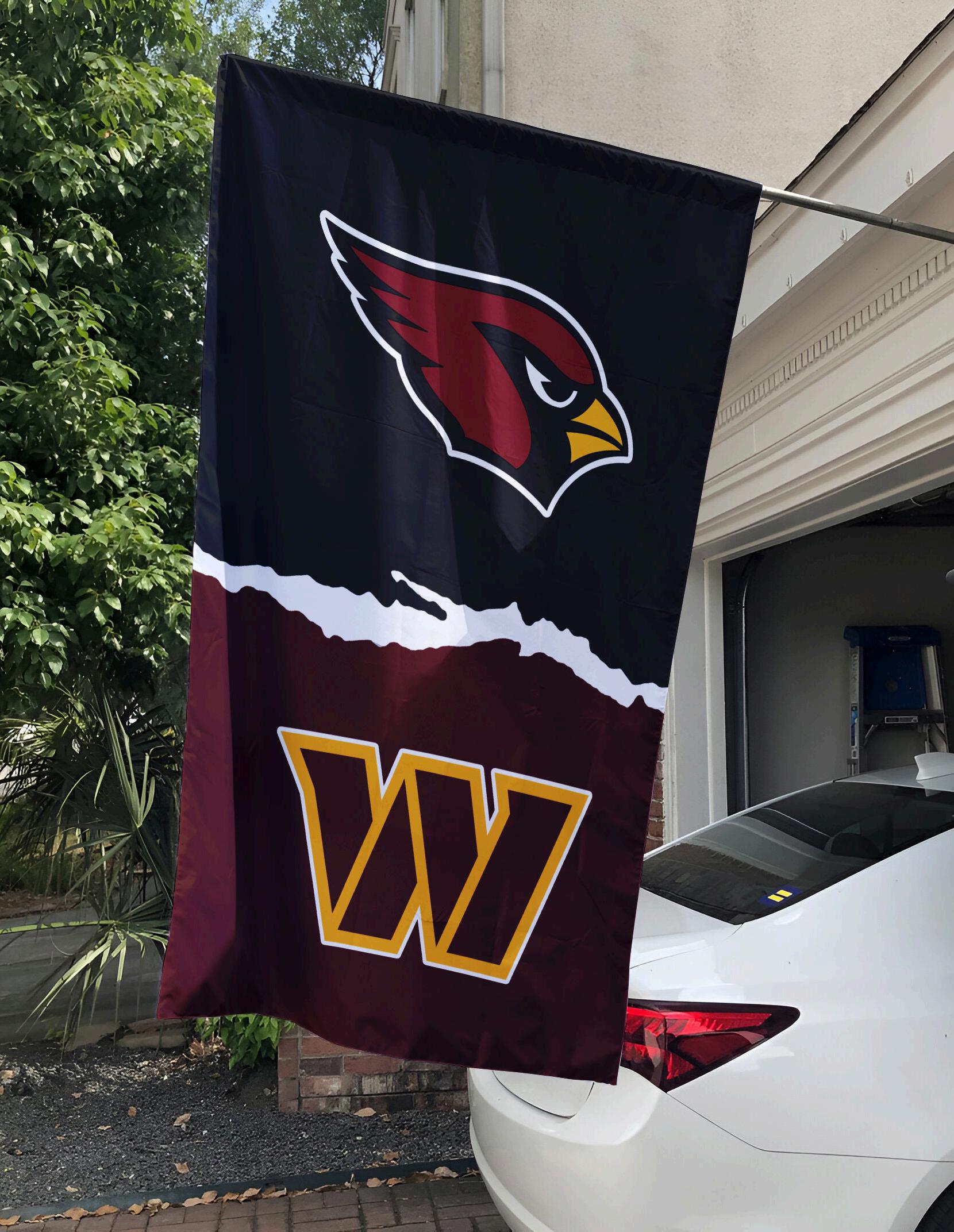 Cra ed from durable, weather-resistant materials, this NFL House Divided Flag withstands the elements while retaining vibrant colors. It features an innovative design that splits the ag into two distinct halves, displaying the iconic logos and colors of the Arizona Cardinals and Washington Commanders is makes it a fantastic conversation starter and pride symbol.