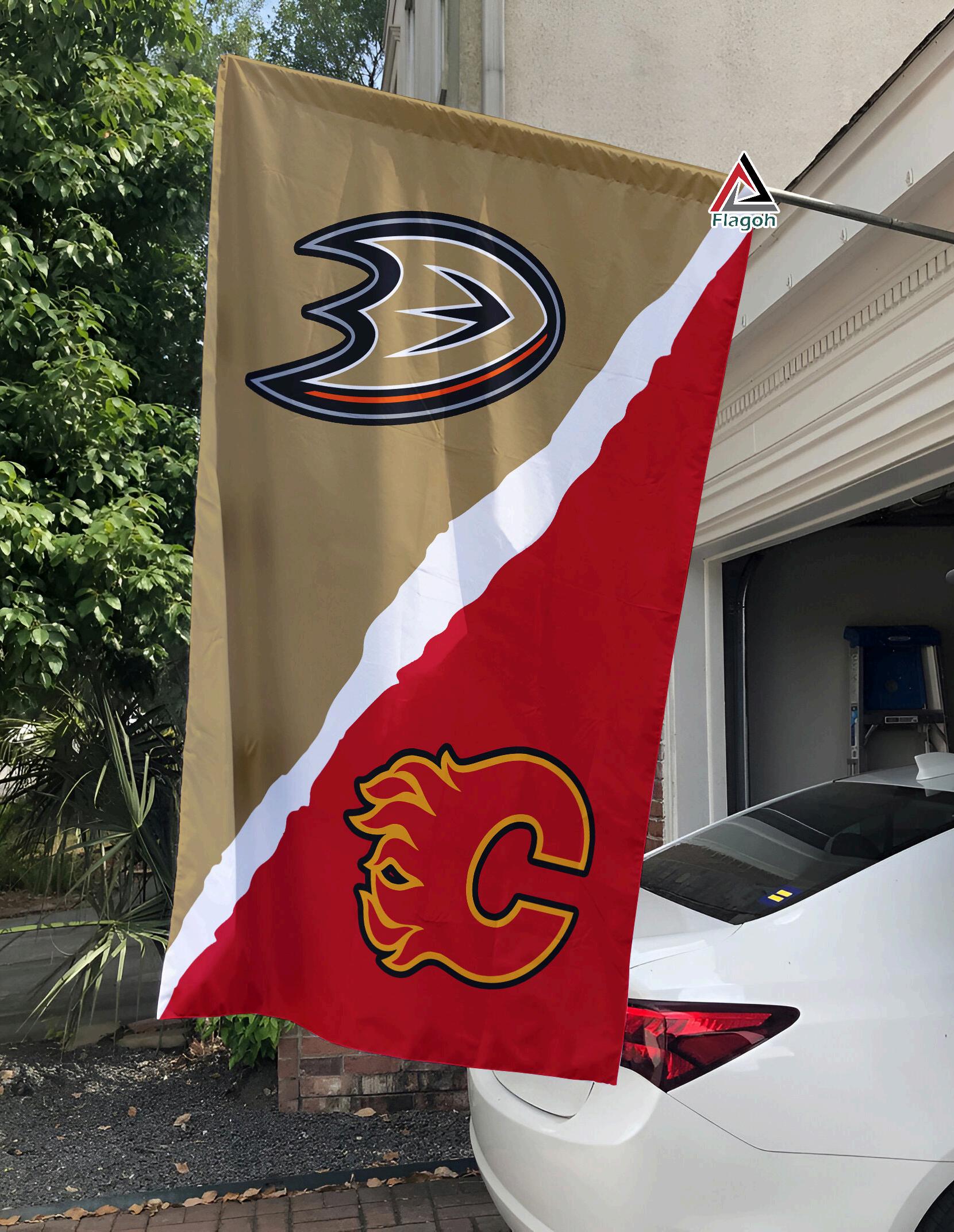Get yours today and elevate your fandom to the next level with this must-have NHL memorabilia. Remember, great rivalries deserve great ags! Ducks vs Flames House Divided Flag, NHL House Divided Flag