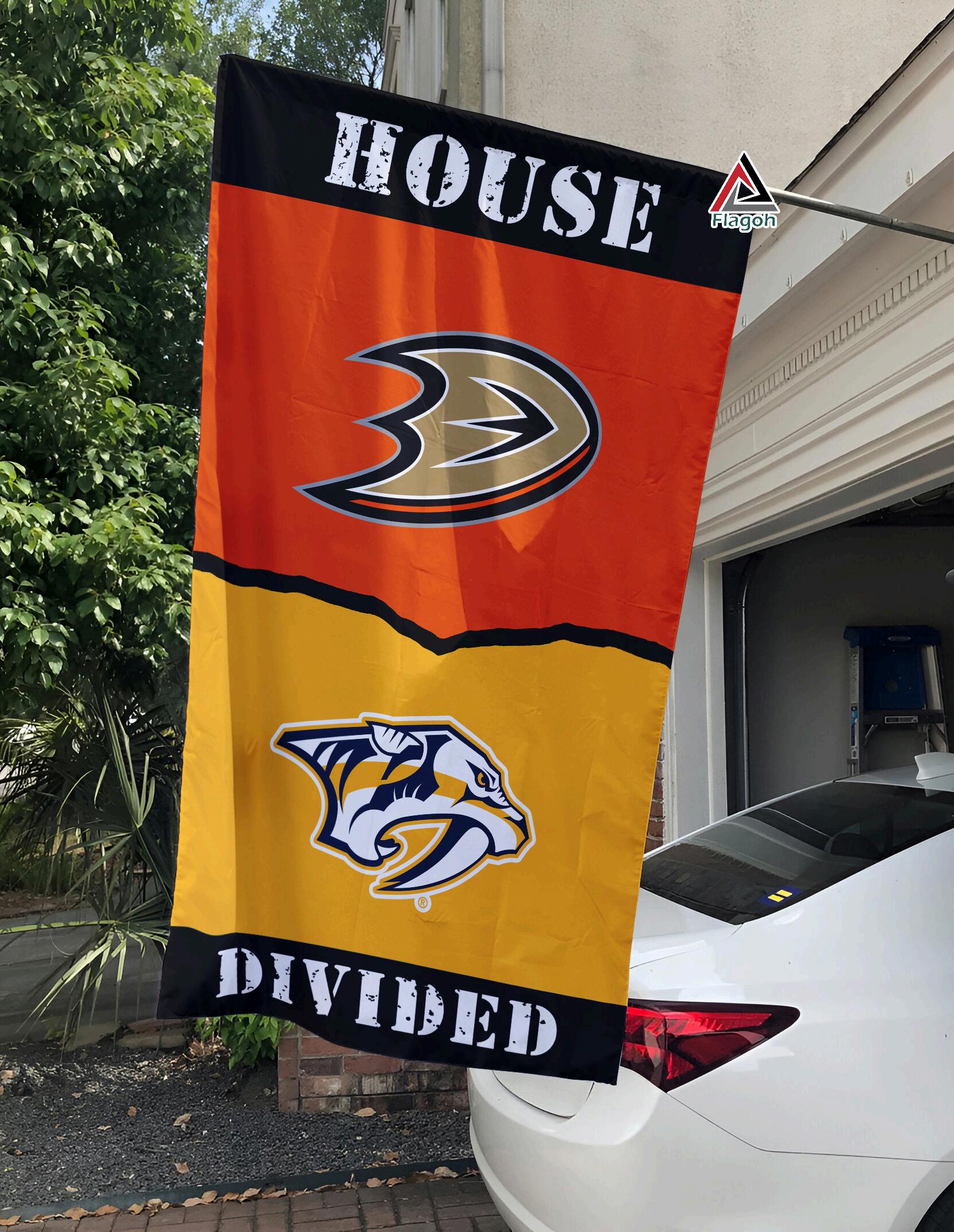 Whether you cheer for the Anaheim Ducks or the Nashville Predators, this ag is a perfect emblem of your NHL enthusiasm Cra ed from high- uality materials, the Ducks vs Predators House Divided Flag, NHL House Divided Flag displays a vibrant representation of both teams, making it an eye-catching addition to any home, man cave, or tailgate party