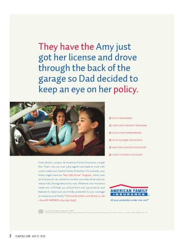 They have the Amy just got her license and drove through the back of the garage so Dad decided to keep an eye on her policy. AUTO INSURANCE TEEN SAFE DRIVER SM PROGRAM GOLD STAR HOMEOWNERS AUTO & HOME DISCOUNTS MULTIPLE VEHICLE DISCOUNT GOOD STUDENT DISCOUNT