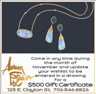 Cabin Creek BBQ Co., in Nicholson, is doing smoked turkeys (half or whole, $12.99/lb), sides (cornbread dressing, squash casserole, sweet potato soufflé, all $35 half-pan/$69 whole pan; mac and cheese, $27/$50; and green beans, $24/$50) and gravy ($10/qt). Call 706-7572267 or email cabincreekbbq199@gmail. com by Nov. 22 to order. Cold pickup Nov. 26; hot pickup Thanksgiving Day.
