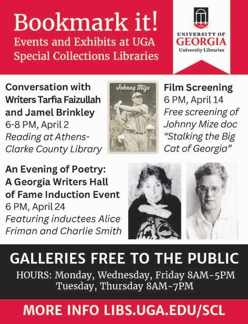 Gardener’s dilemma: I really kill my veggie plants. If you’ve got a serious case of black thumb, I suggest going to one of the local farmer’s markets for plants as well as advice. Marigold Market (marigold collectivewinterville.com) has an online ordering form with a lot of stock from three area farms. Pick up will be Saturday, Apr. 18. Other farmers at the Athens Farmer’s Market (athensfarmersmarket.net) usually bring some extra seedlings for sale in the spring, though there’s not an organized sale. Master Gardeners are a regular presence at both markets and a great resource if you’re stuck in the weeds of gardening—literally or figuratively. f