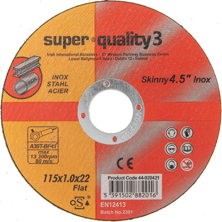 SUPER QUALITY grinding and cutting discs comply with international standards and safety requirements EN 12413.