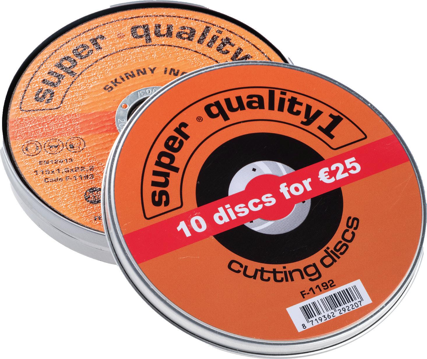 Super Quality cutting and grinding wheels come in a range of sizes from 100mm to 230mm for use on portable angle grinders and 300mm to 400mm for use on petrol saws, chop saws and stationary machines.