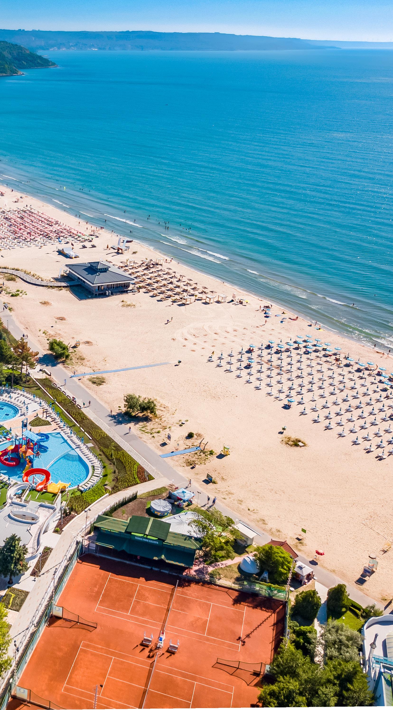 BESONDERHEITEN: alle Tennisplätze sind von jedem Hotel in der Anlage fußläufig erreichbar; seit 2019 ist Albena das amtierende Europäische Sportresort; Center Court in unmittelbarer Strandlage; die eigene Tennisakademie bietet saisondeckend verschiedene Trainingsprogramme; gut gefülltes Turnierkalender, offen für internationale Beteiligung; Kombiprogramme mit weiteren Sportarten möglich; eigene Resortklinik für Sportmedizin und Rehabilitation mit Erste-Hilfe-Service; auswärtige Trainer, die eigene Gruppen auf der Anlage betreuen, sind willkommen; Shuttle Service zu den Flughäfen und breites Ausflugs- und Kulturprogramm.