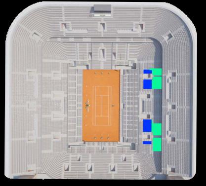 ● Category Gold or Category 1 seats on the Philippe-Chartier Court. In the lower side stand facing the umpire and the players’ chairs.