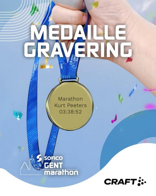 Heb je je medaillegravering besteld bij je inschrijving? Dan kan je aan de hand van je borstnummer langs gaan bij de stand die even buiten de finishzone staat.