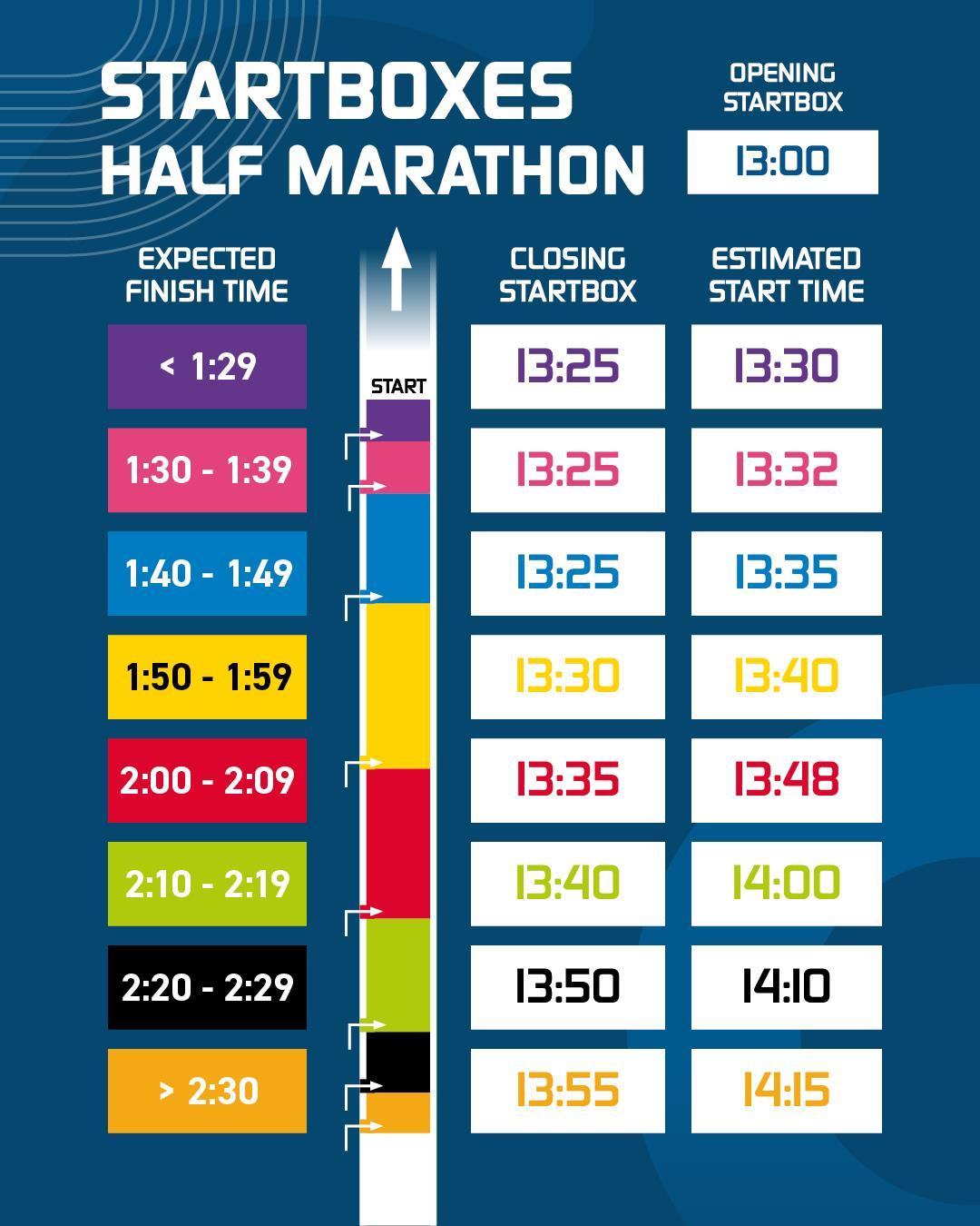 Voor zowel je eigen loopcomfort als dat van je medelopers is het het meest aangewezen om in het startvak te staan van je beoogde eindtijd en bijhorende pacer. Dit moet zorgen voor een ideaal loopcomfort voor iedereen. Er is geen controle, want dankzij de fair play van de lopers kan iedereen vlot van start gaan.