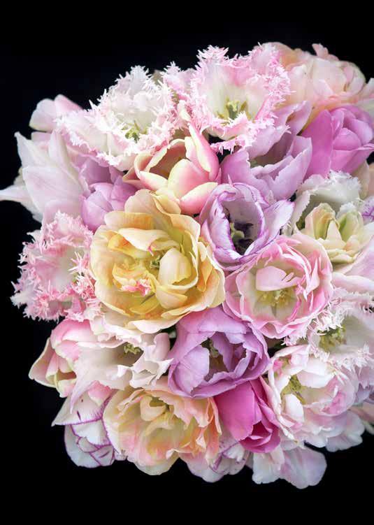 Tulips: We’ve gone a little bit overboard this year! Sabina went all soft, deciding on a pastel hued collection ‘Sherbet Sorbet’ (p30) and (amongst others) indulged with two new varieties in her favourite colour orange: Valdivia (p.23) and Disneyland Paris (p.16) which looks a little like it ‘just got out of bed’. Karen’s got her wish for the return of her favourite tulip Rem’s Favourite (p.20) describing it as ‘like blackcurrant ripple ice cream’ and sourced Mango Charm (p.15) which starts off the colour of unripe mangos, slowly turning a delicious pink …. and then there is Rasta Parrot (p.20) which as Sabina says is simply bonkers!