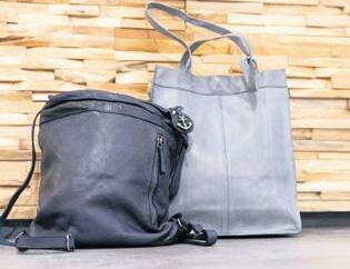 handgemaakte zilveren en glazen sieraden waaronder oorbellen, glasbedels en zelf gemaakte kindersieraden. Tassen en accessoires van leer en hergebruikte materialen completeren het assortiment.