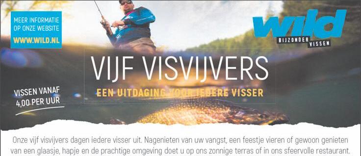 Vissersbeleven bij WILD een heerlijk dagjeuitin debuitenluchten vangen paling, forel, meerval of snoekbaars. Zehuren of kopen hun visgerei bij WILD. Vispasnietnodig. www.wild.nl