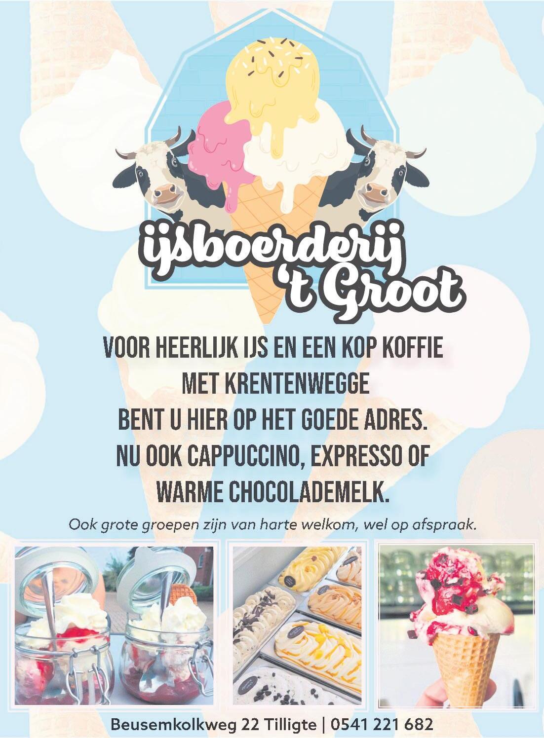 Wat is erfijner dan heerlijk koel ijs na eenflinke wandeling offietstocht door het mooie Twente? IJsboerderij 't Groot in Tilligte verkoopt de lekkernij al meer dan vijftig jaar.