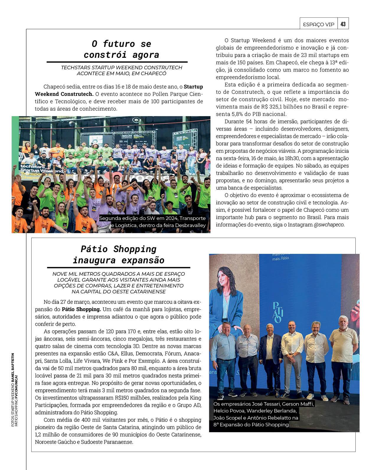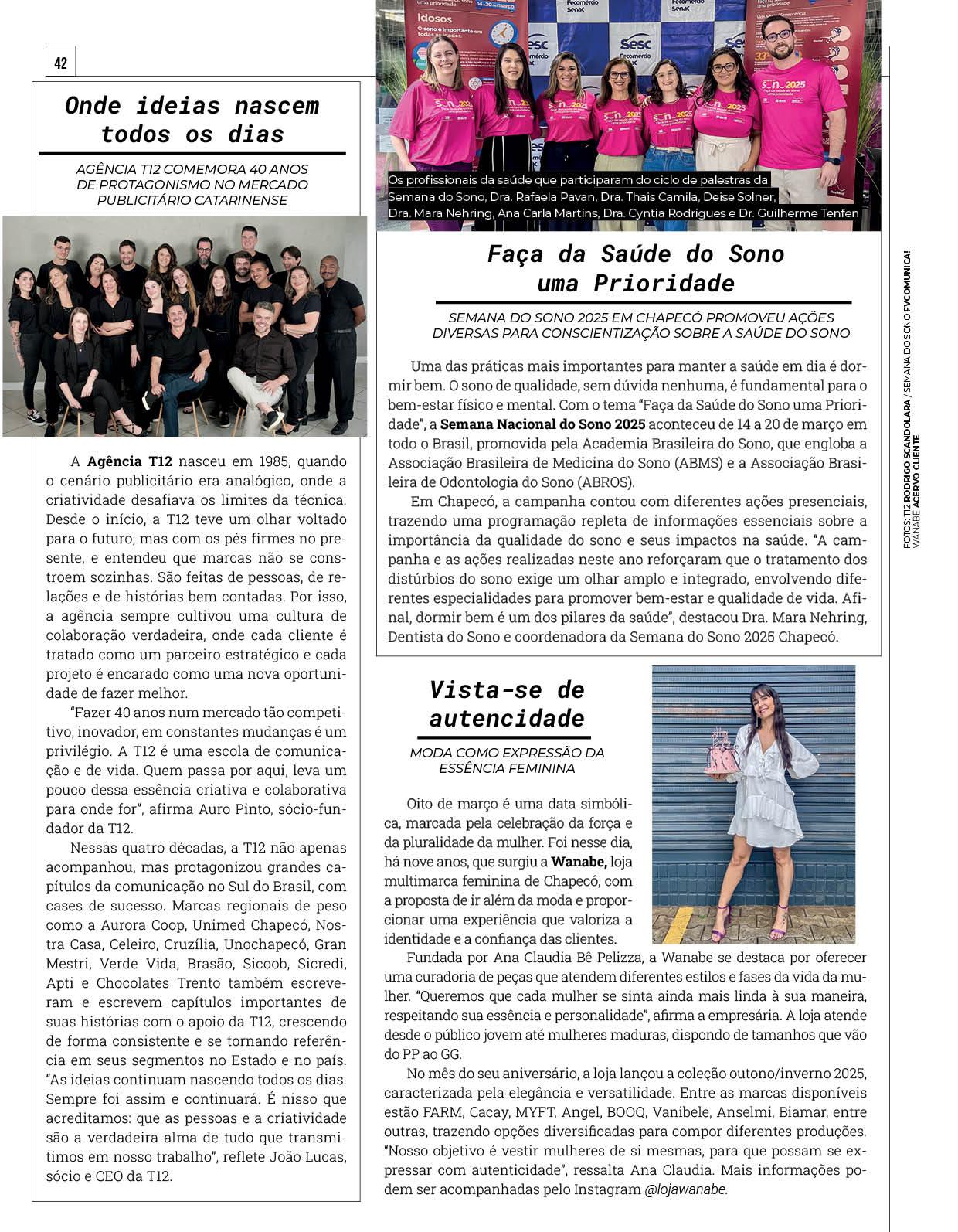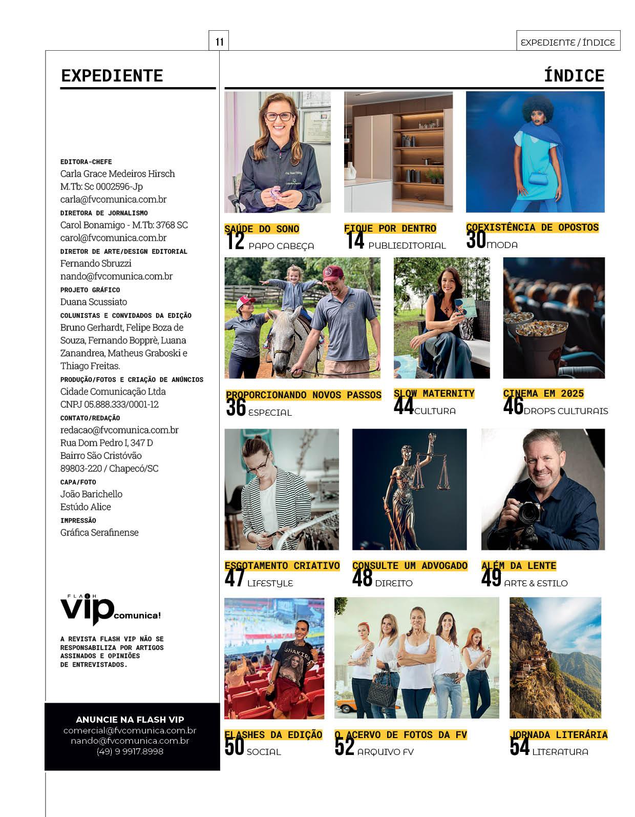 Nesta edição, você confere a matéria de capa sobre o Fashion Pátio; uma reportagem especial contando a história da Associação Recomeço e das vidas transformadas pela entidade; o Papo Cabeça traz a importância de cuidar da saúde do sono; uma conversa sobre maternidade desacelerada e, como sempre, muitas colunas e publieditoriais para você se informar e se inspirar!