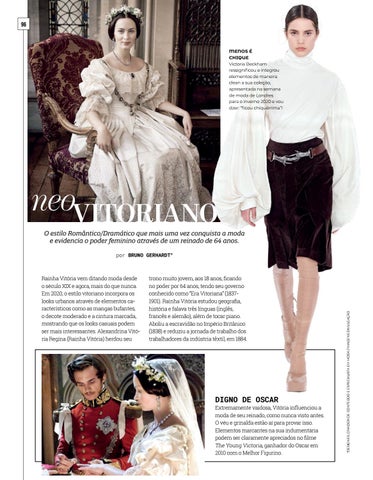 Rainha Vitória vem ditando moda desde o século XIX e agora, mais do que nunca. Em 2020, o estilo vitoriano incorpora os looks urbanos através de elementos característicos como as mangas bufantes, o decote moderado e a cintura marcada, mostrando que os looks casuais podem ser mais interessantes. Alexandrina Vitória Regina (Rainha Vitória) herdou seu