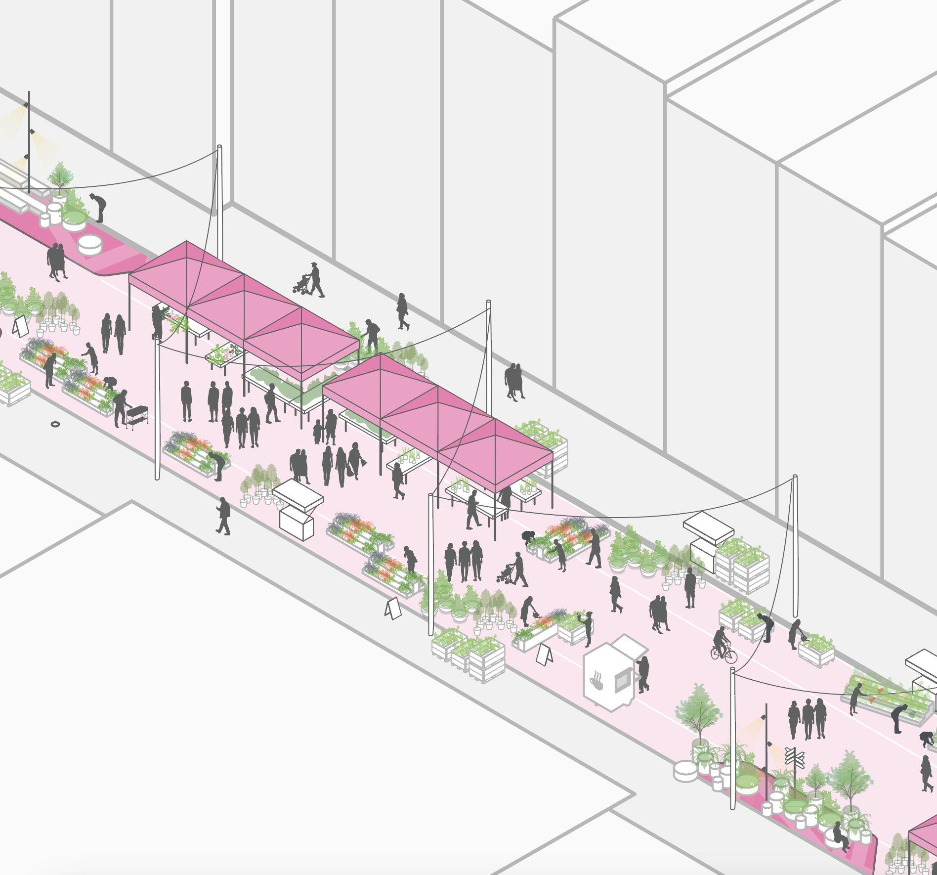 Blooming out from Broadway, position 28th Street as a public life magnet that melds the magic of the FlowerDistrict with the buzzing energy of Broadway.