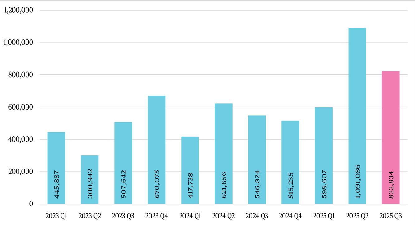 Q3 leased square footage of Class A and B spaces increased by 50% year over year; tenants signed for more than 822,000 SF of Class A and B space in Q3 2025, compared to just 546,824 in Q3 2024.