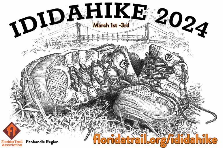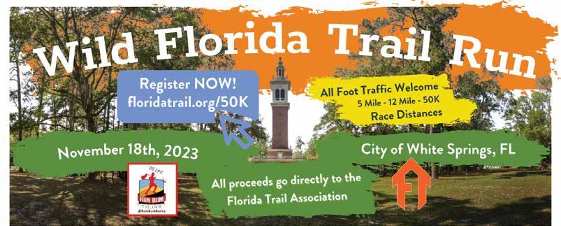 Contributors retain copyright to their work but give the Florida Trail Association permission to use to promote FTA and the Florida Trail. Articles are subject to editing for clarity and space. Materials will be returned if accompanied by a self-addressed stamped envelope. Opinions, observations, and endorsements made within the Florida Trail Footprint do not necessarily reflect those of the board or staff of the Florida Trail Association.