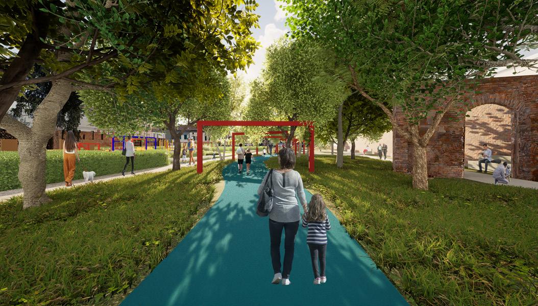 The Project for the ancient garden of the Ducal Palace, arises from the analysis of the spatial, social and urban necessities of the city of Guastalla. Its relationship with the Padana plain has always been marked by the passage of the Po river. The river’s presence, affected by the drought and the recurring floods, has led our thinking to the consideration of the water relevance as source of life. The strong desire to raise awareness on the consequences of the progressive loss of this element shaped the labyrinth: a contemporary proposal of the pergola which recalls the river path. The maze is willing to stimulate a more conscious use of the constrained water resources, by telling the history of the valley through the evolution of the landscape and its vegetation. The maze envelops and encloses the space dedicated to the Italian Garden, reinterpreted the forms and functions in order to meet the renewed needs of the society. Even if recalling the Renaissance character of the hortus conclusus, a private space protected from the city, the garden is not a close and reserved space anymore, indeed is open to citizens and visitors of all ages, thanks to different platforms dedicated to sport, relax, kids’ plays and the memory of the area’s culture and history. These are further split with different furniture and facilities in order to supply various and flexible activities. The project of the garden arises from the awareness of the lack of a meeting place in Guastalla. Keeping the role of urban walkthrough, linking two public spaces, the new ducal garden reduces the tear of the urban fabric starting from the awareness of the post-pandemic society. Even more at open air, shared spaces represent an essential need inside our cities.
