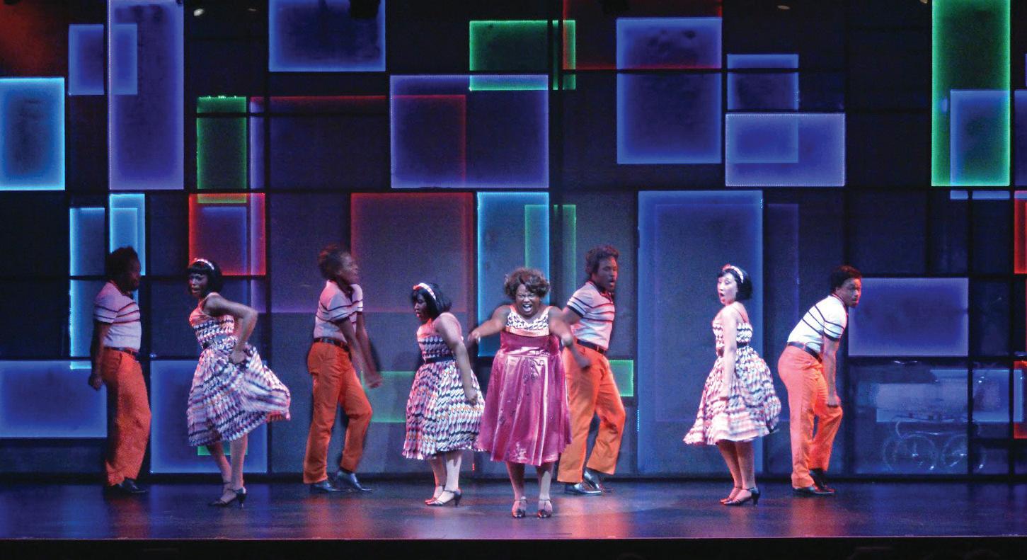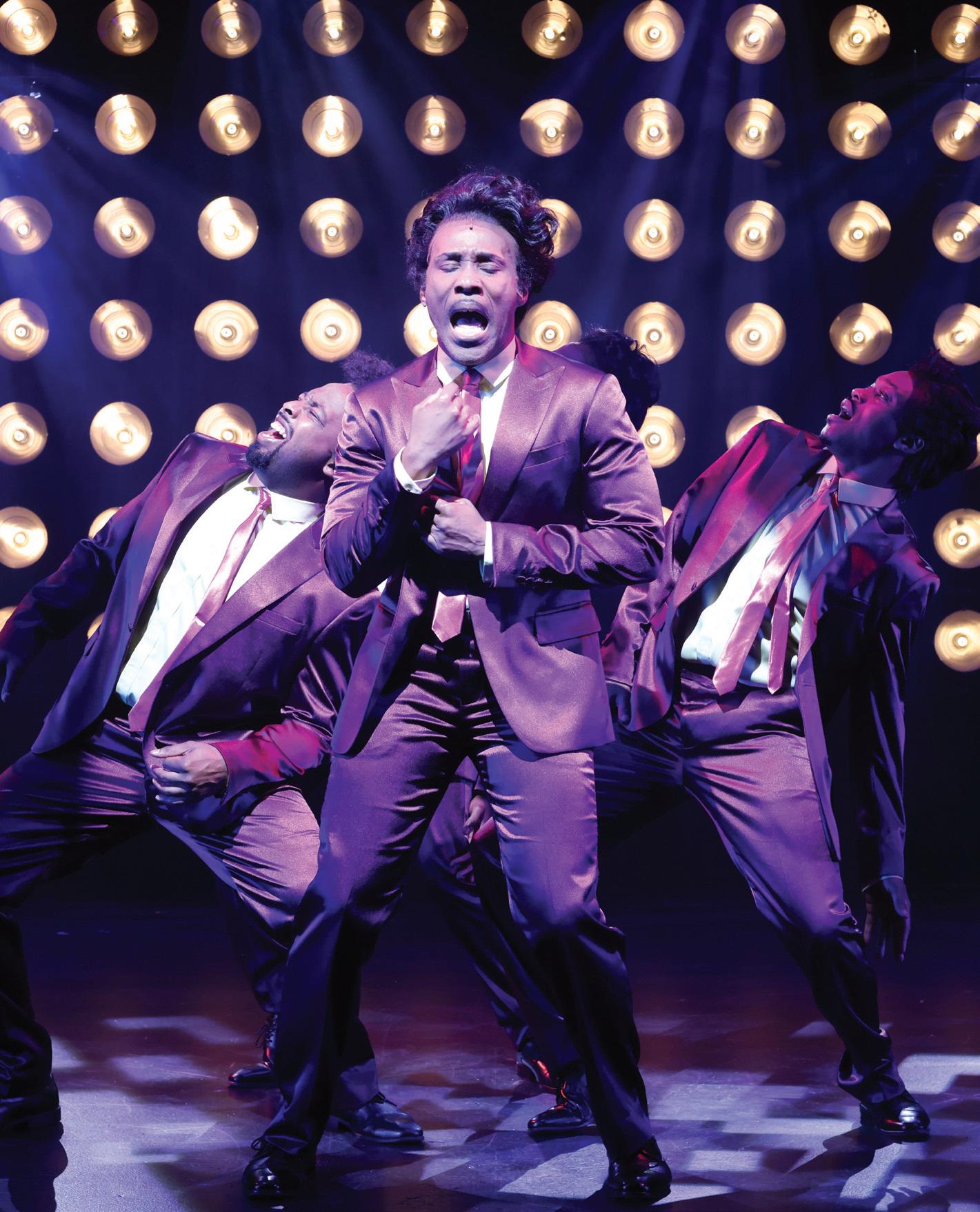 Lighting fixtures placed directly on stage, known as “practicals,” are often used to support the story. For Beautiful a custom light wall was created to transport the audience to The Drifters’ performance at the Apollo.
