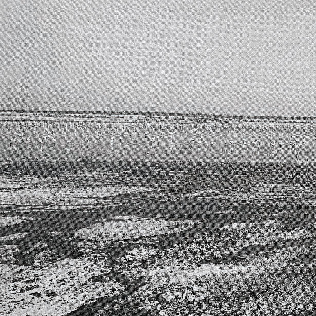 Viajé hacia el suroeste desde Ongata Rongai (a las afueras del Parque Nacional de Nairobi) y me adentré en el Valle del Rift keniata. Poco después de partir, la caída en altitud a lo largo de la carretera (bastante drástica) reveló los extraordinarios cambios en el color del suelo, que pasaba del rojo y el naranja de la rica materia volcánica al tono grisáceo en menos de 50 kilómetros. En condiciones de sequedad y calor extremo, se desplegaba un cautivante paisaje blanco. Las salmueras se cristalizaban en el horizonte, donde multitudes de flamencos rosas cribaban las aguas poco profundas y alcalinas del lago Magadi. Cerca, en la orilla este del lago, se posaba una planta química. Magadi Soda LTD extrae y fabrica ceniza de soda y salinas y ha establecido un asentamiento para los trabajadores y sus familias.