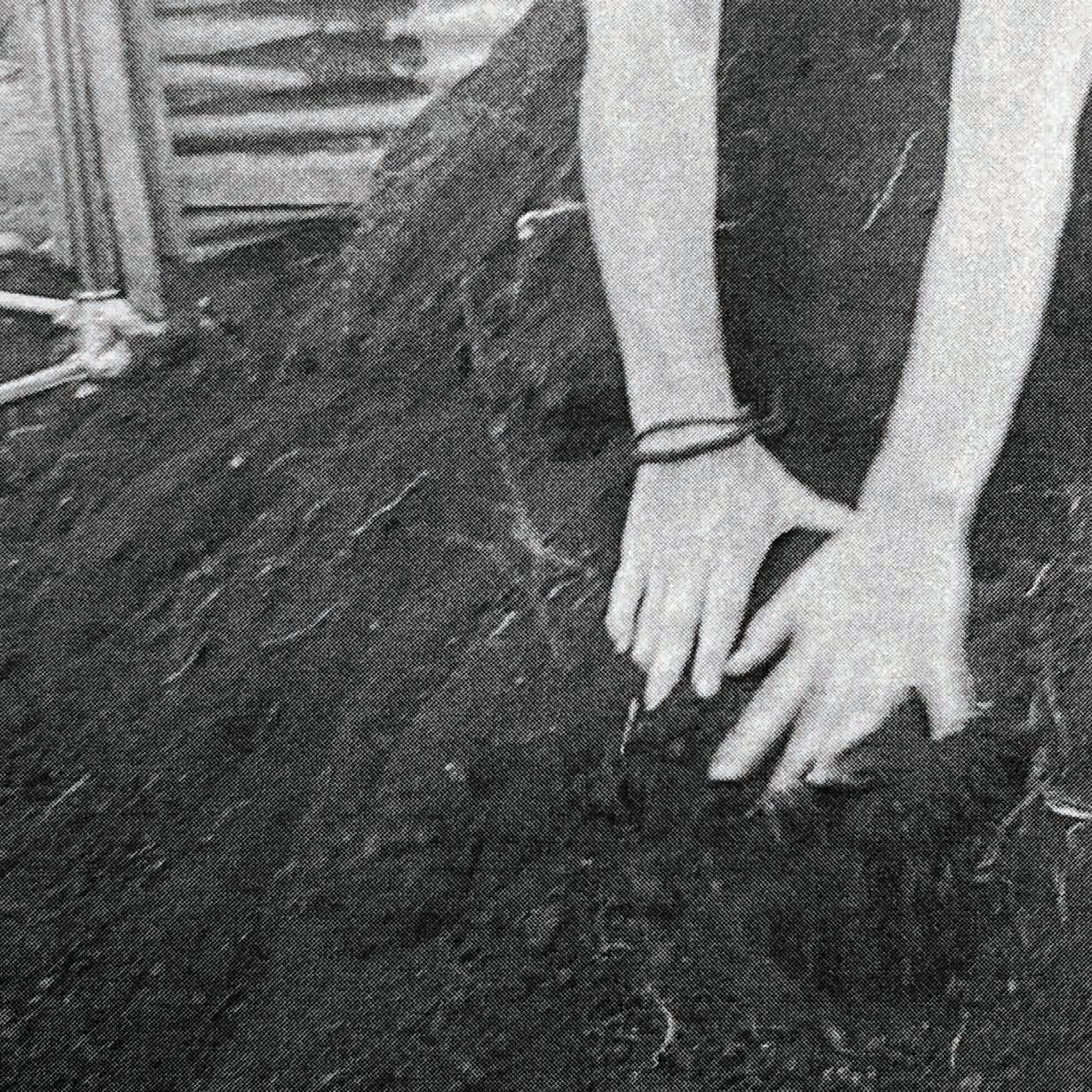 En una instancia particular, utilicé todo mi cuerpo para desmantelar una pila alta de tierra volcánica de 4’ (1,25 m) dentro del shamba (un área de jardín vallado de aproximadamente 50 ft²). Utilizando un montículo de tierra como apoyo, puse todo mi cuerpo en el suelo, mientras me movía y respiraba en pleno contacto con la tierra y, a través de este proceso, representé mi cuerpo como un espacio, con fronteras, centros vitales, bordes, debilidades y una armadura, como capa sobre capa.