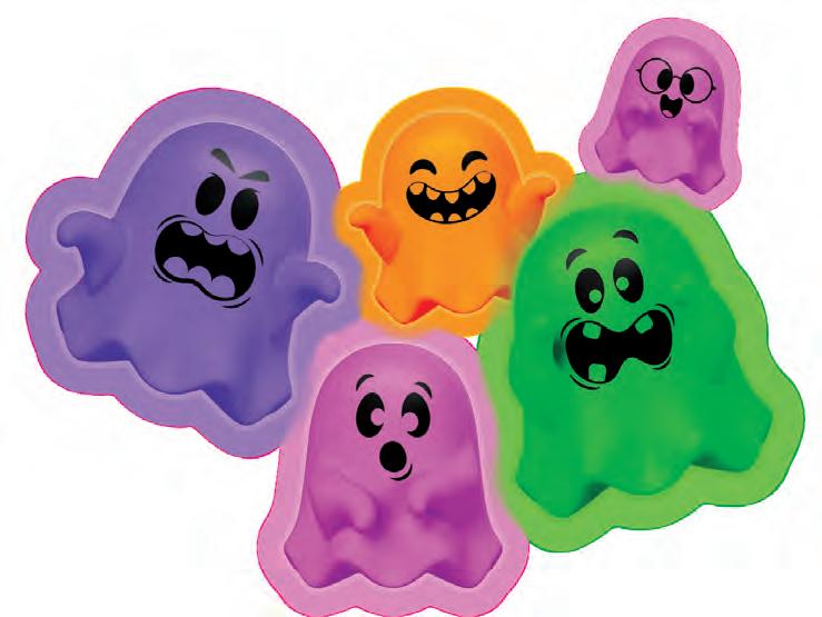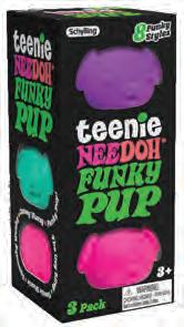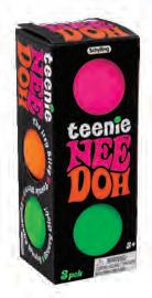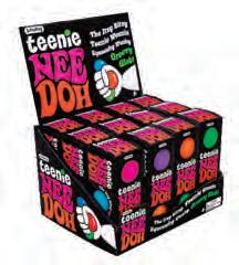 Age: 3+ • Dough-filled sensory satisfaction • Fun pumpkin shape glows in the dark 3 assorted styles; 2.5” diameter Pkg: window box; 2.5”W x 2.5”H x 2.5”D • POP: 12 pieces; 5.15”W x 9”H x 8”D NEEDOH® SPOOKY SQUISHKINS NDWSKHH23 • $3.00 • 10 pc min time or all 4 Halloween-themed Teenie NeeDoh globs together