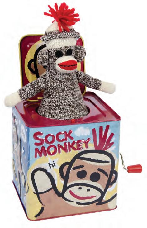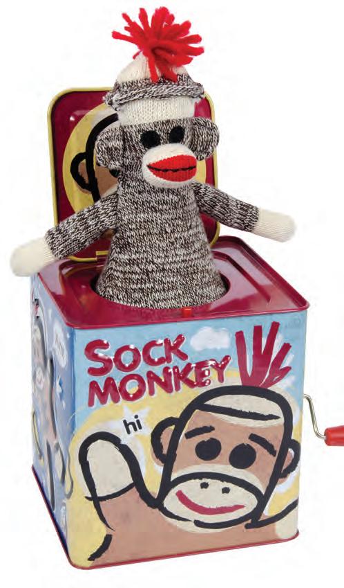 ges: 18m + • Pkg. Size: 5.5” W he puppet dances as the handle is turned mbossed tin lays “Pop Goes the Weasel”