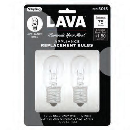 Item size: 4.5’’ Tall • 15 Watt bulb 2pk • This bulb works in 11.5″ / 12 oz. Lava® lamps.