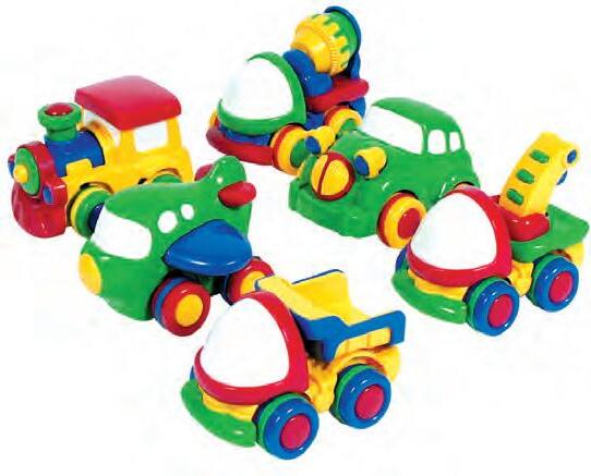 • Each vehicle features a moving part when pushed