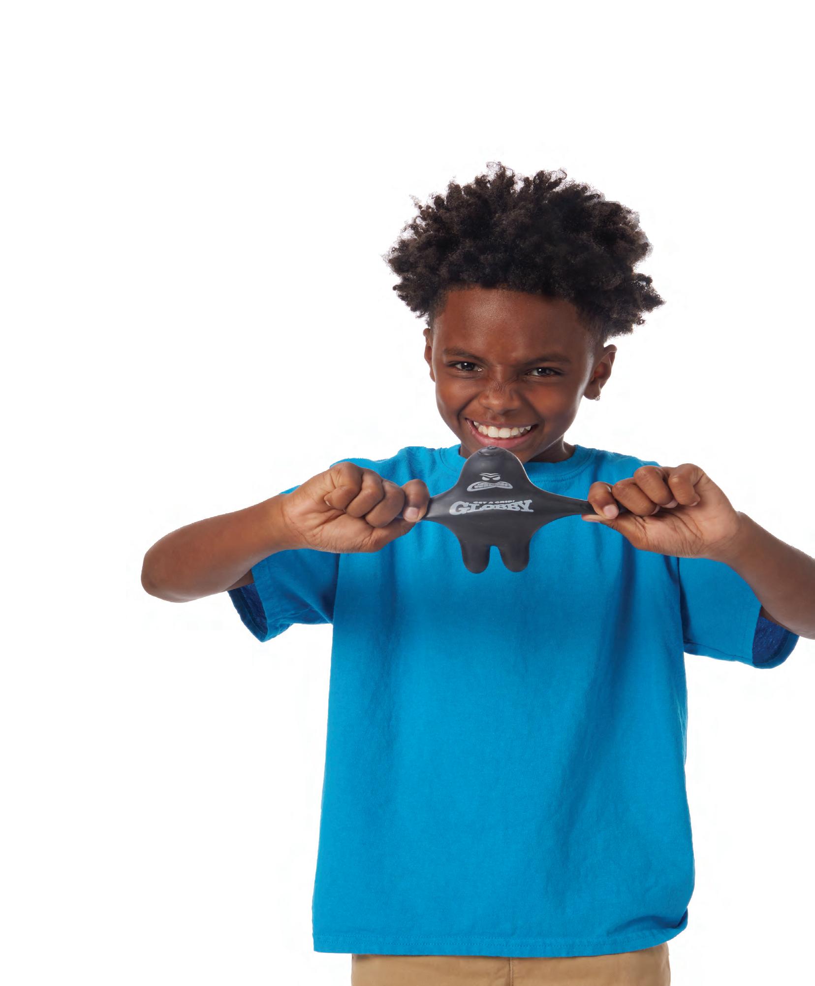 • Get a grip on the holidays! Grab, pull, and stretch Santa Globby until your heart is content