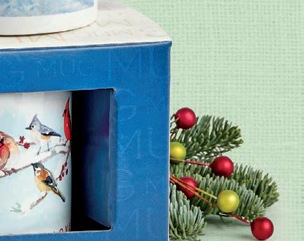 Fun and festive holiday mug designs are popular gifts and come ready-to-wrap in their own gift box.