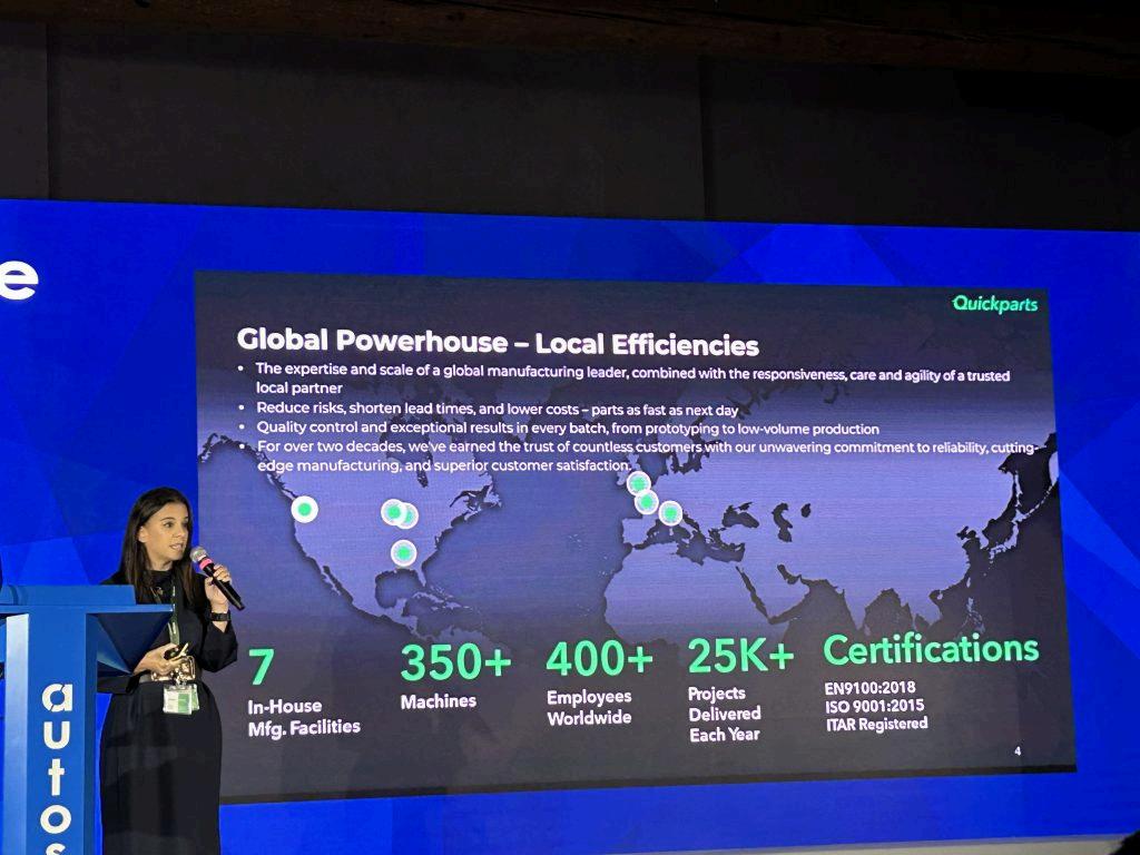 She was joined on stage by Allessandro Buson, Sales Leader Southern Europe, who related that Quickparts was established in the USA over 25 years ago, primarily as a product and serviceprovider,thatbasicallycanturnanyconcepttoreality.