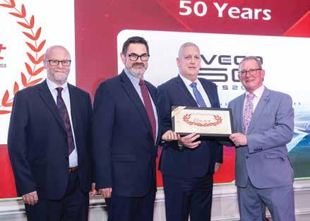 IVECO 50 Years –Accepting the award are Rod Hawkins, Business Development Manager, Iveco Ireland, Greig Goodings, District Sales Manager, Iveco UK & Ireland and Joe Lynch, Sales Manager,