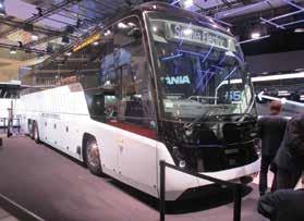 A fully electric Scania tri-axle right hand drive coach was displayed alongside a bio-gas powered Touring