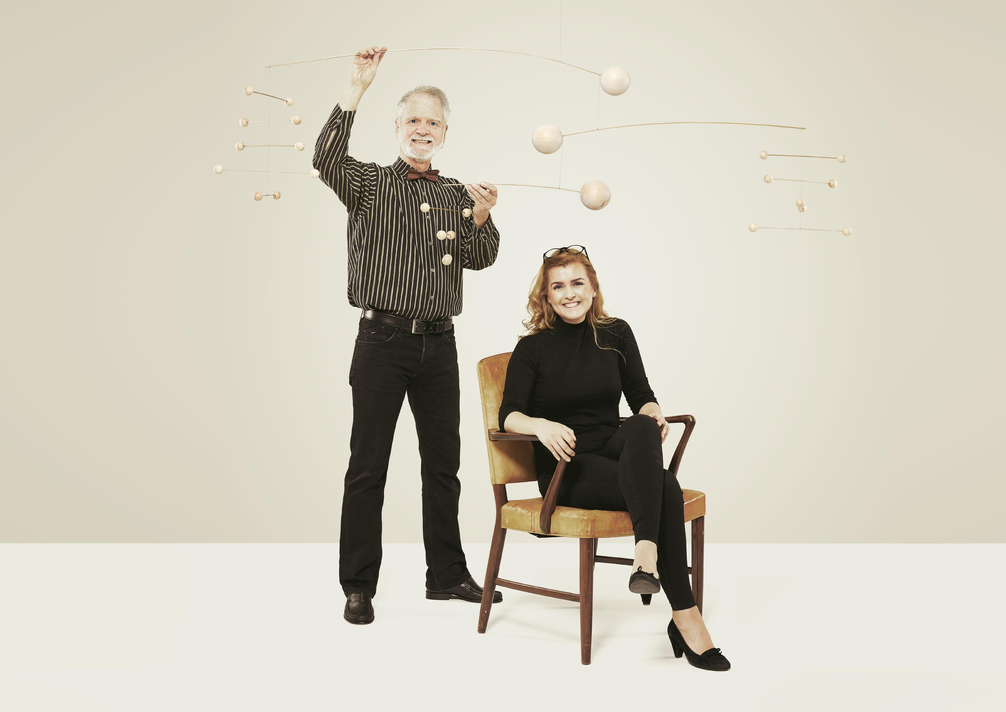 Father and daughter, Ole and Christine Kit Flensted, in the mobile studio preparing new designs to bring movement and balance into