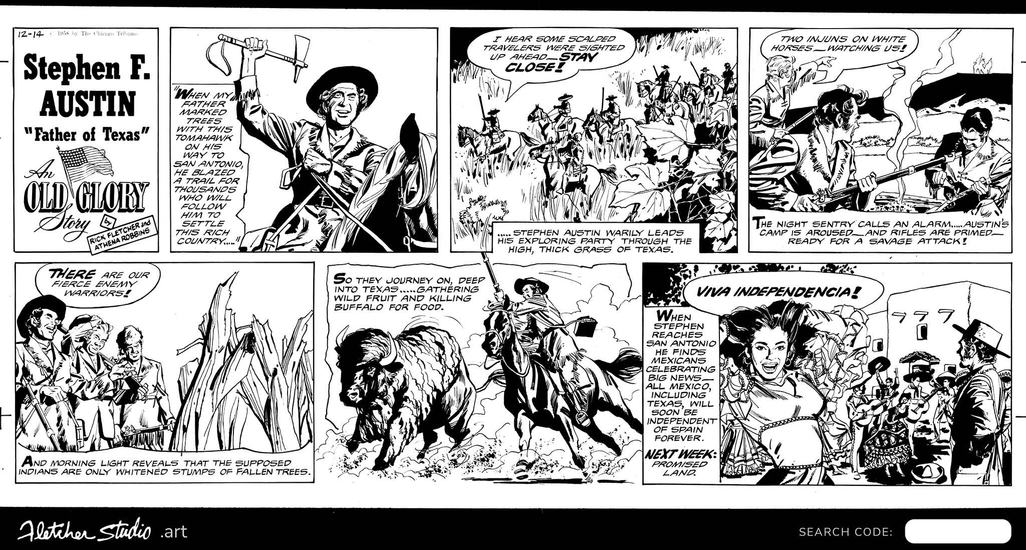 This riveting portrayal of a young New Orleans lawyer begins in 1820 while undertaking his father’s dream to put down roots in the beautiful countryside of Texas. Heart-wrenching trouble emerges around every bend involving murderous battles, Mexican prisons, and starvation. What is made clear in this 13-page story of the Lone Star state? Texans dare enemies to “Come and Take It”, Texans remember the Alamo, Texans created the Bowie knife, Texans built independence and law with the Texas Rangers. Don’t mess with Texas. December 27, 1836, Texas President Sam Houston mournfully announces the “The Father of Texas is no more.”