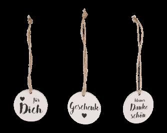 Glas mit 30 Anhängern.