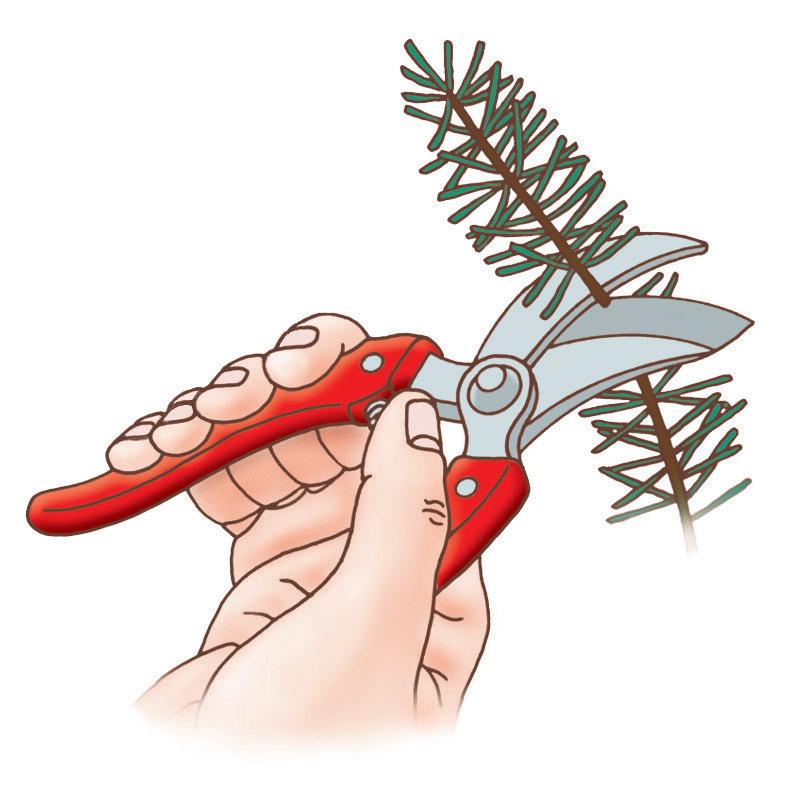 Le sécateur : il permet d’obtenir une très bonne taille, mais si les lames sont émoussées, ou pire encore, tordues après un travail sur un bois de trop fort diamètre ou trop dur, il est impossible de ne pas écraser les tissus. On trouve deux types de sécateurs. Le premier a une lame en D qui vient s’appuyer sur une enclume d’un métal moins dur. Le second, le plus couramment employé, a une lame incurvée et convexe qui croise une contre-lame fixe. Quel que soit le type de sécateur retenu, le rameau doit être positionné de telle sorte qu’il soit coupé par la base de la lame, à l’endroit où il est maintenu le plus fermement. Si on utilise la pointe de l’outil, il est très difficile de pratiquer une coupe bien nette et le risque que les lames se tordent est plus important.