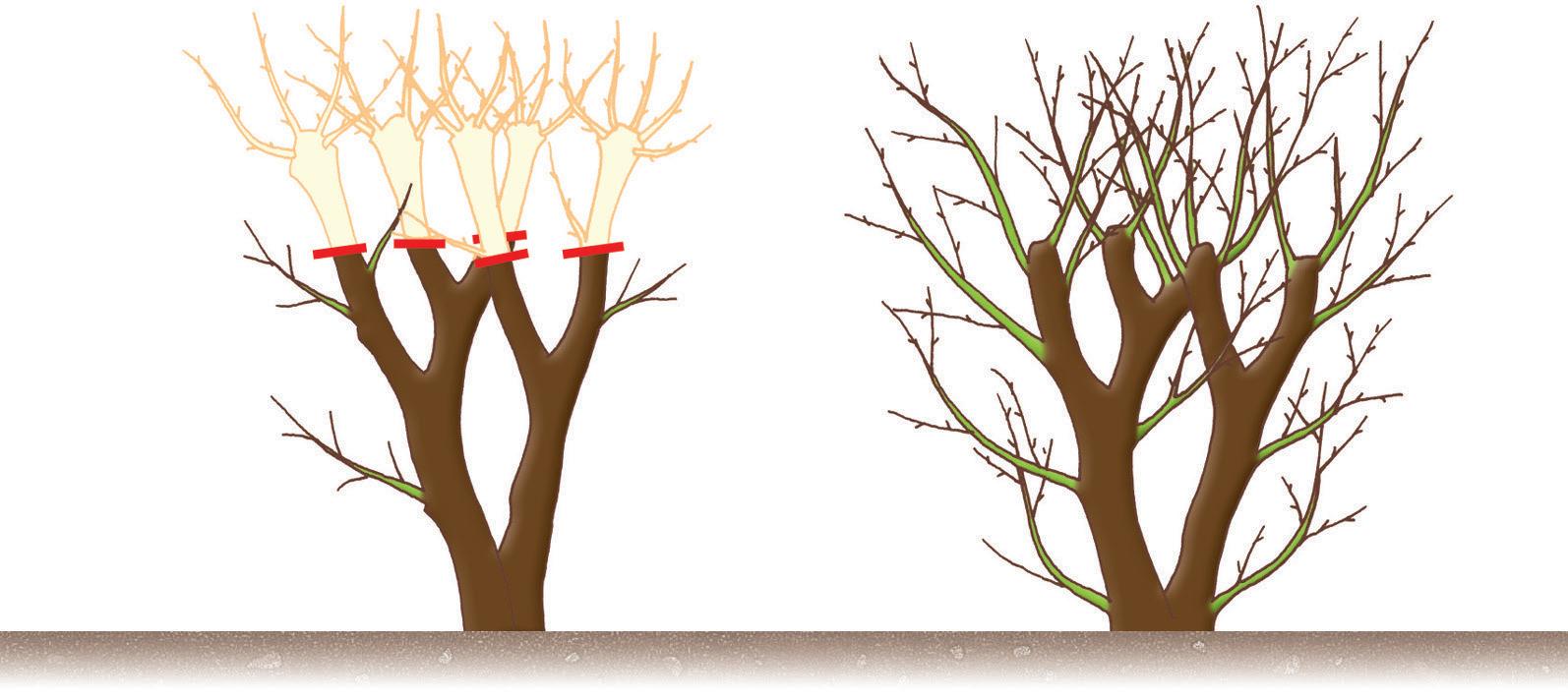 hauteur. Pratiquez cette opération de préférence au printemps. Les végétaux présenteront d’abord un aspect désolant, puis ils repartiront pour une seconde jeunesse.