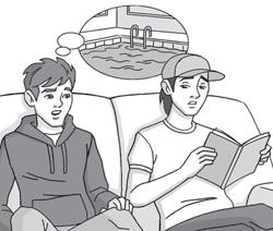 4 Ann is writing a book. 8 The woodpecker is climbing a feeder.