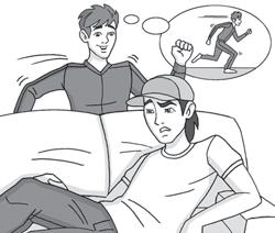 Nick: It’s Saturday morning and we are birdwatching with my uncle again. He’s got a big garden and there is a place with three feeders. He puts food for the birds there. We are wearing anoraks, gloves and woolly hats. It’s cold but it is not freezing. The sun is shining and it’s not windy. We are standing in a special wooden shelter close to the feeders. There’s a small narrow window in the shelter. We do not need any binoculars. Andy and my uncle are taking photos.