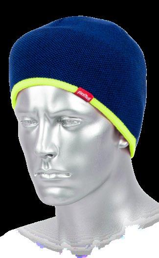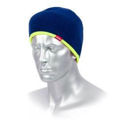 Un caldo e comodo berretto blu con dettagli ad alta visibilità.